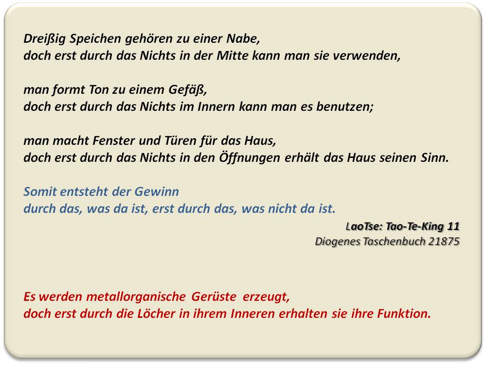"Stellen Sie sich vor, dass mit den Werkzeugen der Chemie völlig neue Materialien mit bisher unbekannten Eigenschaften geschaffen werden könnten." so leitete Heiner Linke, der Vorsitzende des Nobelkomitees für Chemie die Bekanntgabe der diesjährigen Nobelpreisträger für Chemie ein. "Für die Entwicklung derartiger neuer, aus Metallionen und organischen Molekülen zusammengesetzten Materialien und das Aufzeigen ihres enormen Potentials für Forschung, industrielle Anwendung und insbesondere auch zur Lösung drängender Umweltprobleme" wurden drei Chemiker - Susumu Kitagawa (Kyoto University, Japan), Richard Robson (University of Melbourne, Australia) und Omar M. Yaghi (University of California, Berkeley, CA, USA) ausgezeichnet [1].