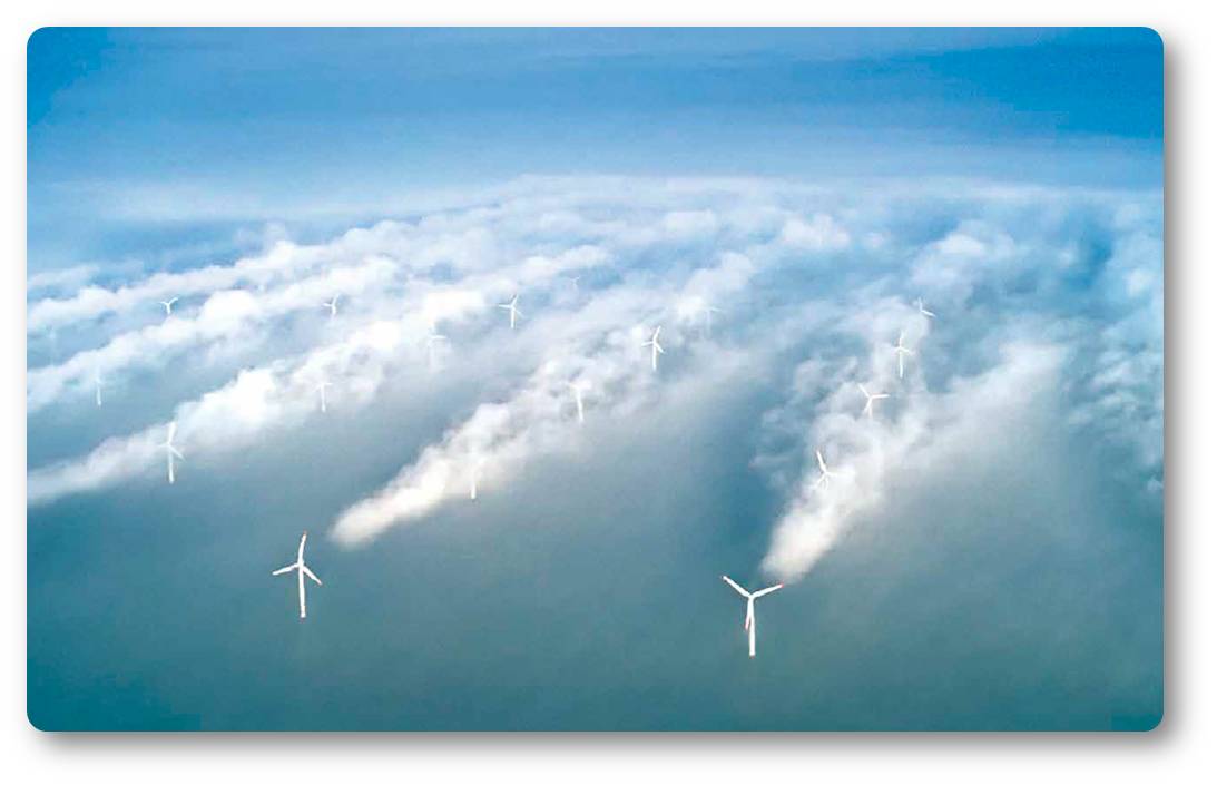 Turbulenz im Windpark: Hinter Windrädern bilden sich Wirbel, die den Wind bremsen. Das muss bei der Planung der Anlagen berücksichtigt werden. (Foto: Vattenfall/ Christian Steiness.© Max-Planck-Gesellschaft) |